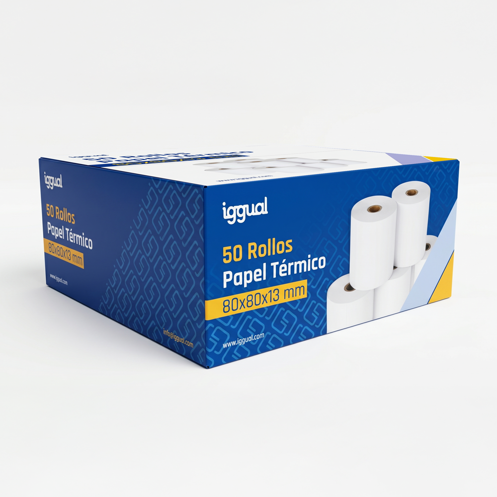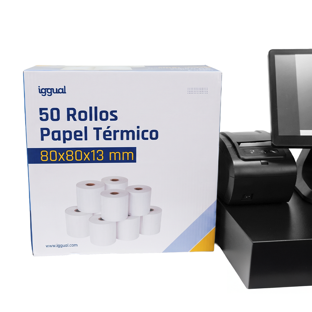 iggual Caja 50 rollos papel térmico sin BPA 80x80